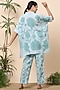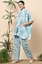 Featuring a powder blue top in linen base with a hand print. It is paired with matching pants.