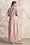 Featuring a shadow rose abaya jacket in linen base with floral motifs and linear hand screen prints, including cuff detailing. It is paired with a dress. Accentuate it with statement earrings, block heels and a clutch for a refined look, perfect for festive evenings, formal dinners or elegant gatherings.