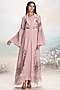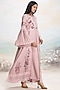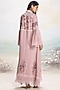 Featuring a shadow rose abaya jacket in linen base with shawl lace collar, print and embroidery. It is paired with an inner dress. Style it with jewellery, block heels and a clutch for a complete look, perfect for occasional wear, party wear and easy daily wear.