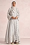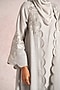Featuring a smoke colored abaya jacket in linen blend base with floral silk thread embroidery, wide sleeves and scalloped detailing. It is paired with a dress. Accentuate it with statement earrings, block heels and a clutch for a refined look, perfect for festive evenings, formal dinners or elegant gatherings.
