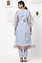 Featuring star colored pants in linen base with foil print, silk thread floral embroidery, organza floral applique and hand painted detailing. This contains only one piece.