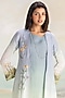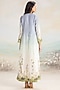 Sunset Blue Linen Printed & Floral Embroidered Abaya Jacket Dress
