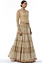Featuring a beige skirt in organza base with boota and gota patti embroidery. It is paired with a shirt. Accentuate it with statement jewellery and heels for a sangeet ceremony.