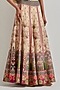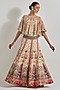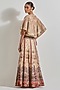 Featuring a beige gold cape in tissue chanderi and cotton lycra base with hand embellishment. It is paired with a skirt having palm motif cross stitched embroidery. Accentuate it with statement jewellery and heels for any festive occasion.