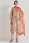 Beige Tissue & Organza Resham Hand Embellished Kurta Set