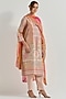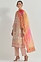 Featuring a beige kurta in tissue and organza base with resham hand embellishment. It is paired with stretch lycra pants and an organza silk tie-dye dupatta. Accentuate it with statement earrings and heels for a festive occasion.