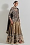 Featuring a gold lehenga in organza, tissue and net base with patchwork. It is paired with a blouse and a dupatta. Accentuate it with statement jewellery and heels for festive occasions or wedding ceremonies.