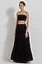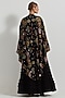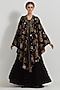 Featuring a black cape in velvet base with hand embroidery. It is paired with a bustier and a pleated skirt. Accentuate it with statement earrings and heels for a festive occasion.