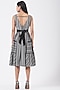 Featuring a black and white paneled dress in crepe base with printed stripe.