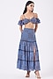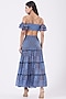 Featuring a blue tiered skirt in chiffon base with front slit. It is paired with a matching crop top. Accentuate with statement earrings and heels for an evening?wear.