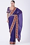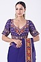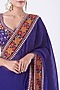 Featuring a clear purple pre-stitched saree in crinkle georgette base. It is paired with a matching organza silk tube blouse having hand embroidery and a belt with rose cross stitch and gota embroidery.