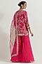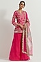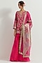 Featuring a fuchsia long kurta in chanderi organza and tissue base with hand embellishment. It is paired with organza sharara pants and a dupatta having patchwork. Accentuate it with statement earrings and heels for a festive occasion.