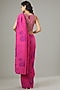 Featuring a hot pink pre-stitched saree in crinkle georgette and stretch lycra base. It is paired with a matching blouse having gota and bead hand embroidery.