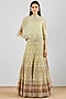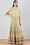 Featuring a light green cape in organza silk base with hand embroidery. It is paired with a matching skirt and a slip. Accentuate it with statement jewellery and heels for a mehendi or sangeet ceremony.