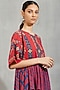 Featuring a magenta peplum top in cotton base with print and cross stitch embroidery. This contains only one piece.