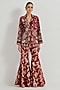 Featuring a maroon jacket in chanderi base with hand embroidery. It is paired with brocade flared pants. Accentuate with statement earrings and heels for festive occasions.
