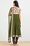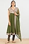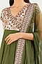 Featuring an olive green wrap kurta in chiffon base with beads embroidery. It is paired with matching churidar pants in modal silk base and a dupatta.