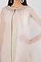 Featuring a pearl grey cape in organza base. It is paired with a matching crinkled crepe dress.