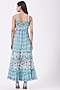 Featuring a turquoise smocked tiered dress in chiffon base with watercolor print.