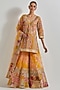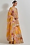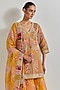 Featuring a yellow kurta in organza base with patchwork. It is paired with sharara pants and a dupatta. Accentuate it with statement jewellery and heels for festive occasions.