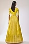 Featuring a lemon yellow lehenga in kanchi silk base with zari embroidery. It is paired with a blouse and a crepe dupatta. Accentuate it with jewellery and heels for a festive occasions or wedding ceremony.