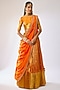 Orange Pattu Silk Zari Embroidered Lehenga Set