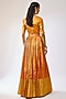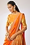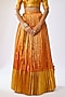 Featuring an orange lehenga in pattu silk base with zari embroidery. It is paired with a zari raw silk blouse and a crepe dupatta. Accentuate it with jewellery and heels for a festive occasions or wedding ceremony.