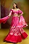 Red & Pink Shaded Modal Satin Banarasi Zari Applique Work Lehenga Set