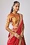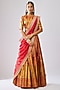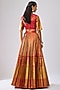 Featuring a red lehenga in silk base with embroidery. It is paired with a blouse and a tabby silk dupatta. Accentuate it with jewellery and heels for a festive occasions or wedding ceremony.