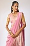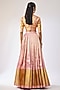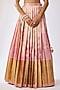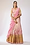 Featuring a rose pink lehenga in silk base with zari, sequin and thread embroidery. It is paired with a tissue blouse and an orange crepe dupatta. Accentuate it with jewellery and heels for a festive occasions or wedding ceremony.