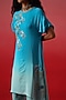 Featuring a sky blue ombre kaftan top in crepe base with floral embroidery and scalloped neckline. It is paired with pencil pants. Accentuate it with stud earrings and block heels for festive occasions or pooja ceremonies.