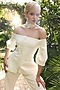Featuring an off-white off-shoulder blazer in banana crepe base. It is paired with pants. Accentuate it with statement jewellery and heels for casual wear.