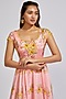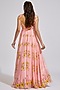 Featuring a peach anarkali in silk and crepe base with print and floral cutdana embroidery.