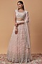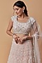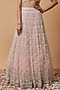 Featuring a blush pink lehenga in crepe, net and cotton base with pearl embroidery. It is paired with a matching blouse and dupatta.