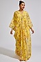Featuring a yellow kaftan in georgette and crepe base with print and cutdana embroidery. It is paired with a matching inner.