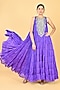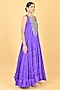 Featuring a bright purple tiered dress in georgette base with silver zari and abla floral embellishment. Accentuate it with statement crystal earrings, a delicate bracelet and embellished heels for a stylish ensemble, ideal for festive celebrations, wedding festivities or elegant evening gatherings.