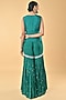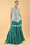Featuring a green blouse in chiffon crepe base with mirror and bead embroidery. It is paired with tiered gharara pants. Accentuate it with zircon earrings and heels for a festive occasion, a cocktail party, mehendi or sangeet ceremony.