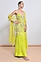 Featuring a neon green tunic in silk organza base with bead and mirror embellishment. It is paired with embroidered chiffon crepe gharara and a net dupatta. Accentuate it with statement earrings, a sleek braid, and metallic heels, ideal for mehendi ceremonies or weddings.
