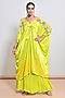 Neon Green Satin Mirror Embellished Kaftan Set