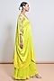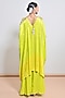 Featuring a neon green ombre kaftan in satin base with floral motifs, mirror and bead embellishment. It is paired with silk organza palazzo pants. Accentuate it with statement earrings, a sleek braid, and block heels, ideal for pre-wedding ceremonies.