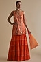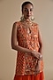 Orange Silk Organza Embroidered Tunic Set