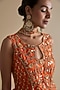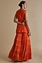 Featuring an orange tunic in silk organza base with sequins and thread embroidery. It is paired with chiffon crepe and silk organza tiered palazzo pants, including a tassel dupatta. Style it with dangler earrings and heels for a festive occasion.
