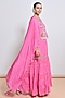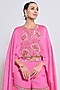 Featuring a pink tunic in silk organza base with kaftan sleeves, bead and mirror embellishments. It is paired with chiffon crepe embroidered gharara. Accentuate it with statement earrings, a sleek braid, and block heels, ideal for pre-wedding ceremonies.