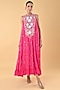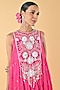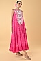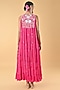 Featuring a pink tiered dress in crepe base with floral motifs and bead embellishments. Accentuate it with dangler earrings and flats for a casual or evening soiree.