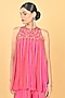 Pink & Red Chiffon Crepe Cutwork Embroidered Tunic Set