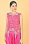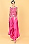 Featuring a pink top in organza base with silver zari, tassel and sequins floral motifs embellishment. It is paired with satin dhoti. Accentuate it with statement kundan earrings and embellished heels for a stylish ensemble, ideal for sangeet celebrations, wedding festivities or festive evening gatherings.