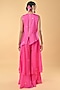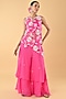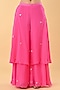 Featuring a pink tunic in sheer organza base with sequins and bead embroidery. It is paired with double-layered palazzo pants and a lycra slip. Accentuate it with zircon earrings and heels for a festive occasion, wedding, engagement or sangeet ceremony.