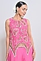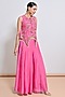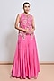 Featuring a pink short tunic in silk organza base with bead and mirror embellishments. It is paired with palazzo pants. Accentuate it with statement earrings, a sleek braid, and block heels, ideal for pre-wedding ceremonies.