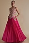 Featuring a pink blouse in silk organza base with sequins embroidery. It is paired with a gathered skirt. Style it with dangler earrings and heels for a festive occasion.