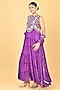 Purple Chiffon Crepe Zari Embellished Tiered Dress With Dupatta